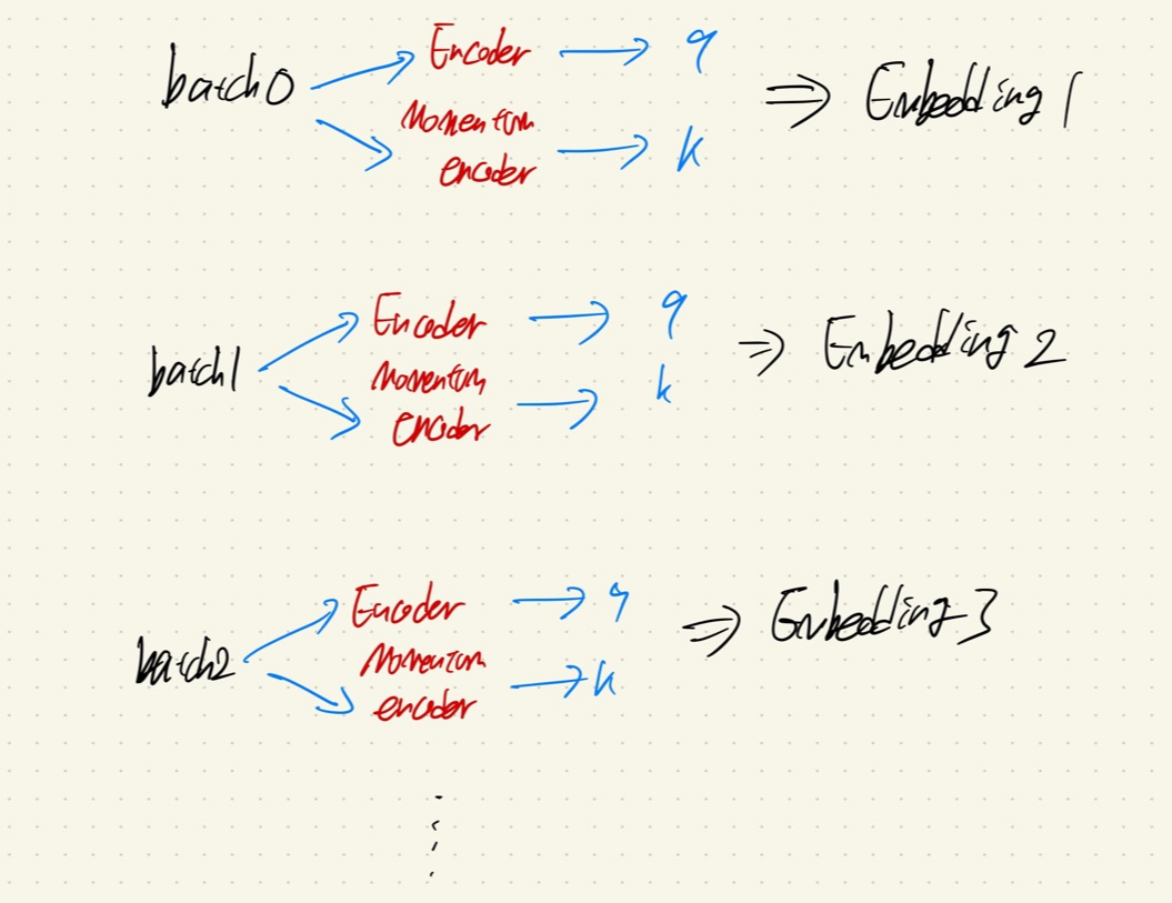 - queue는 dictionary라고 하며, negative sample에 대한 사전 정의가 되어있는 embedding queue이다.