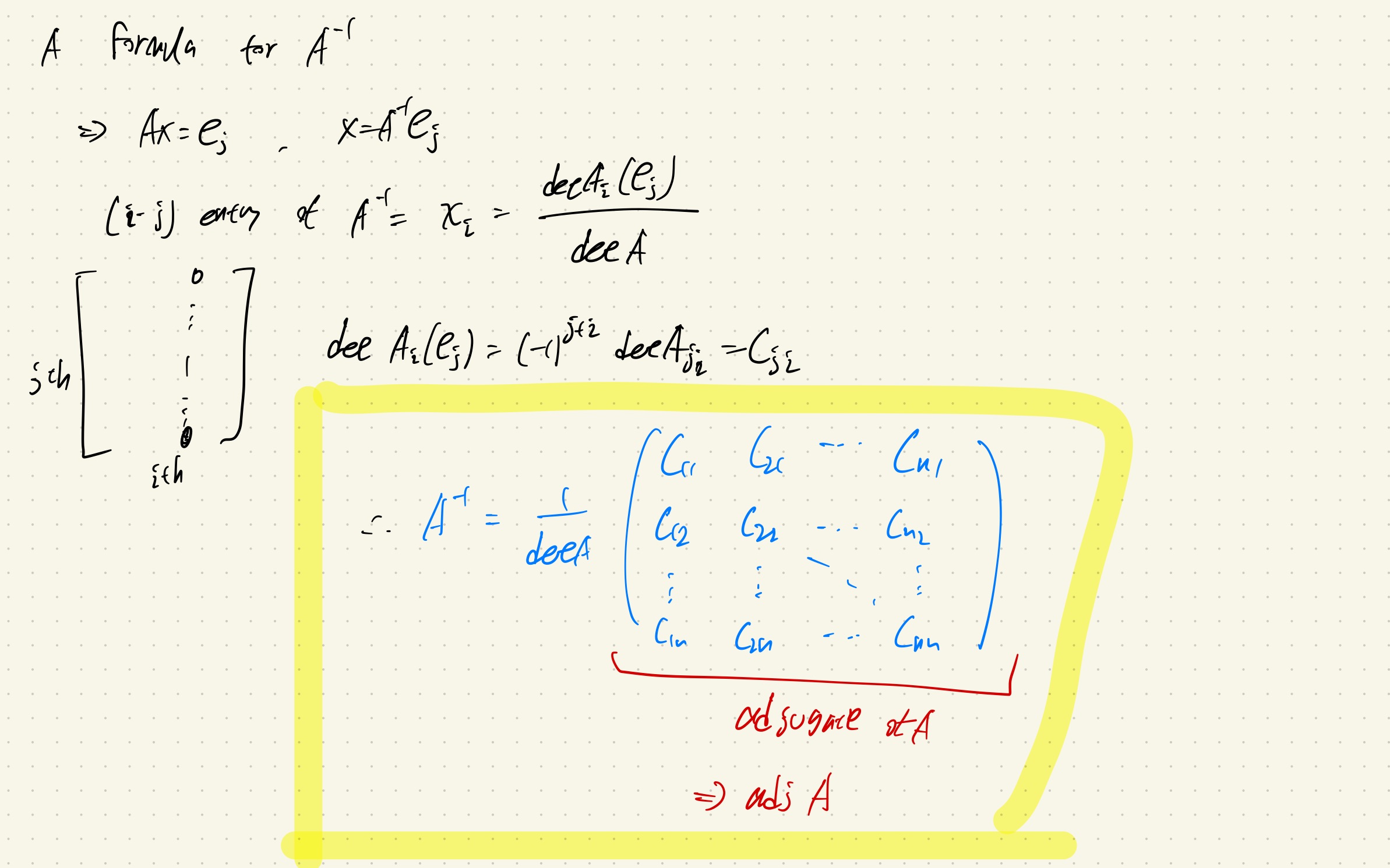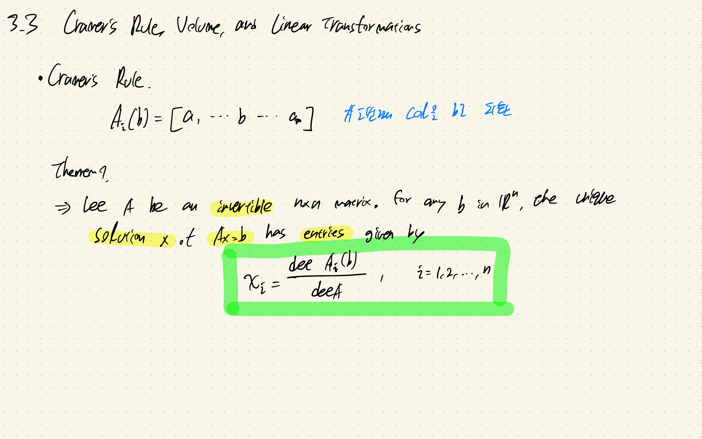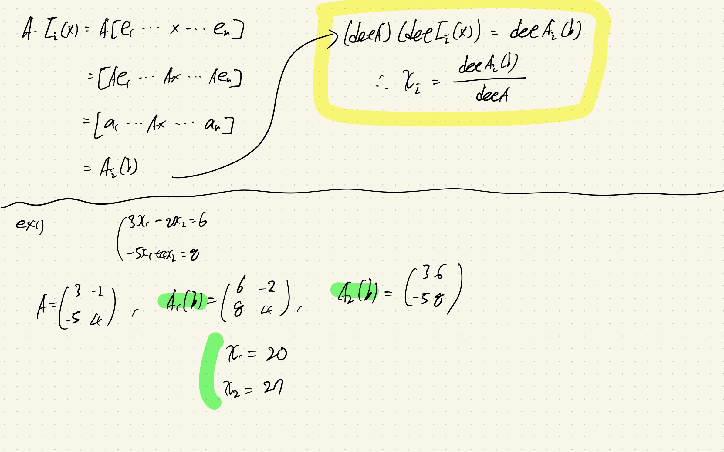 Cramer's Rule를 적용해서, Cofactor를 이용한 determinant 계산 방법이다.