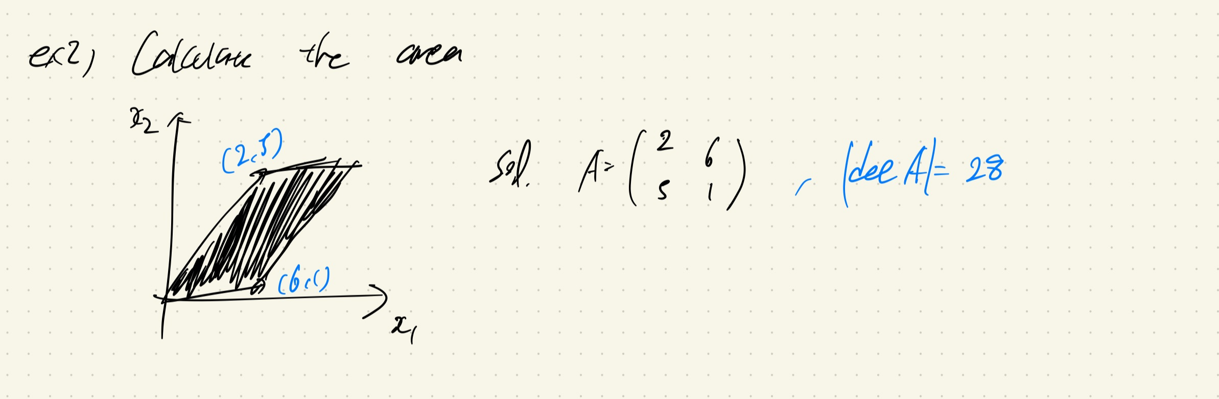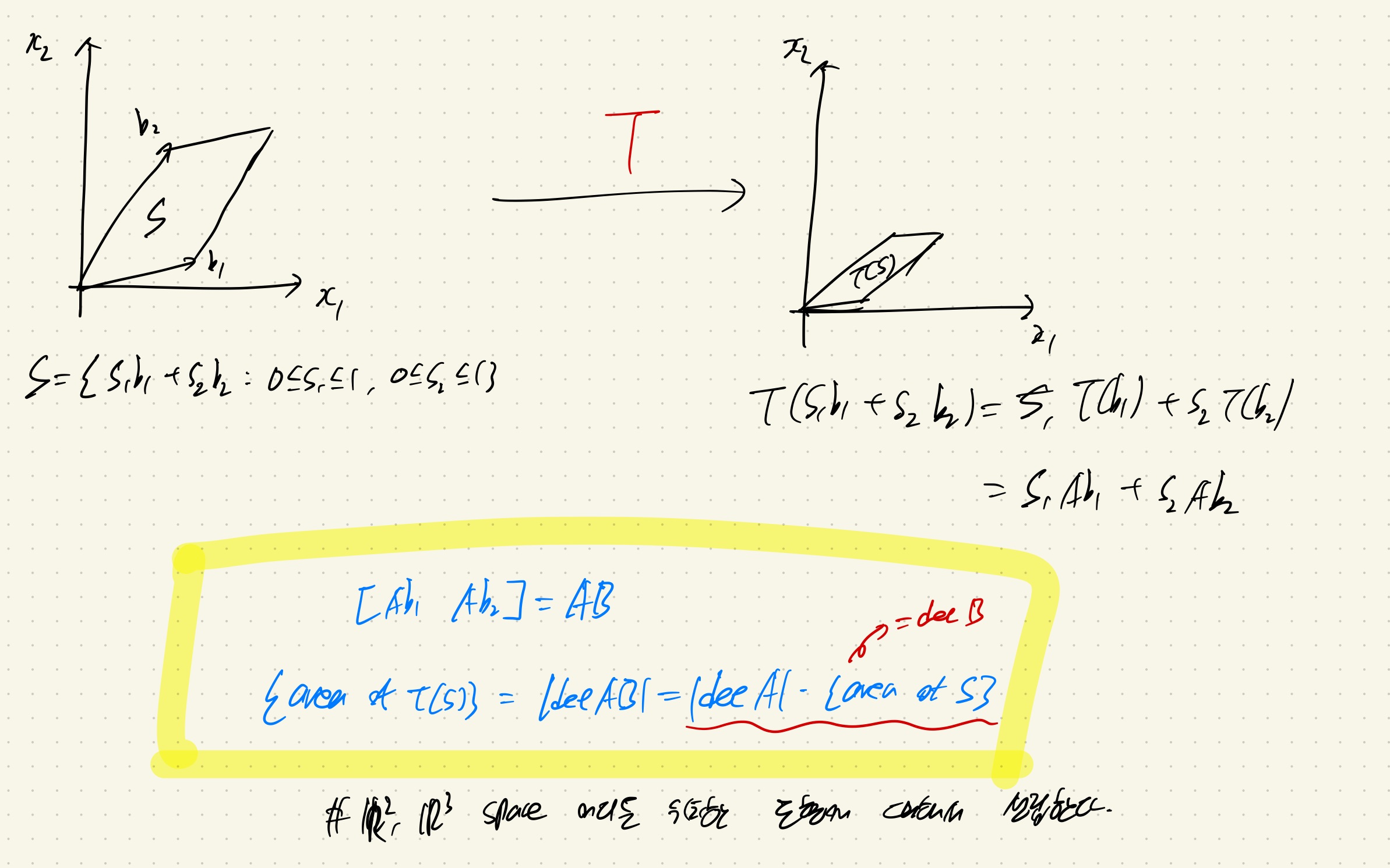 위와 같이 detAB로 표현이 되므로, detAB = (detA)(detB) = (detA)*(area of S)가 된다.