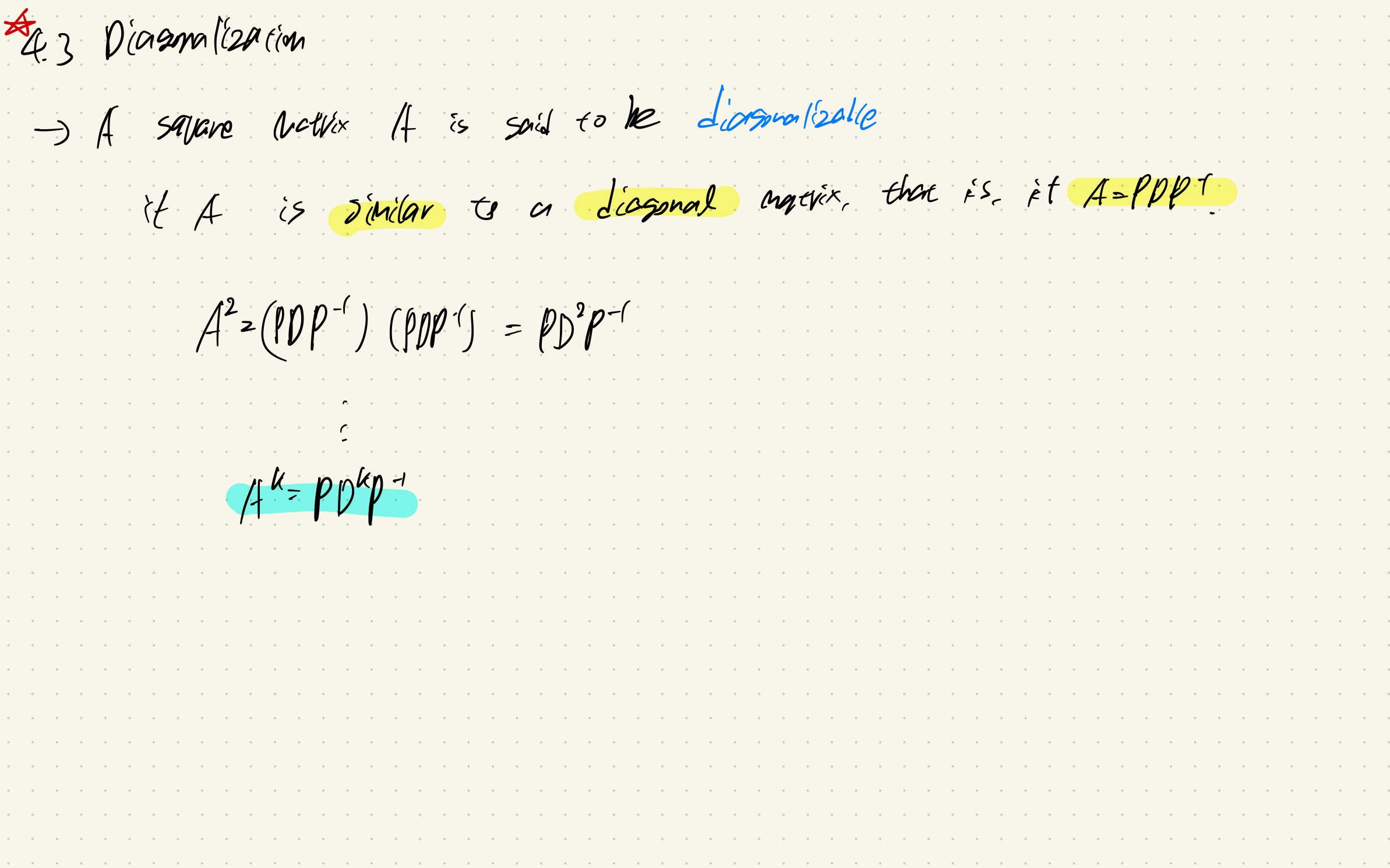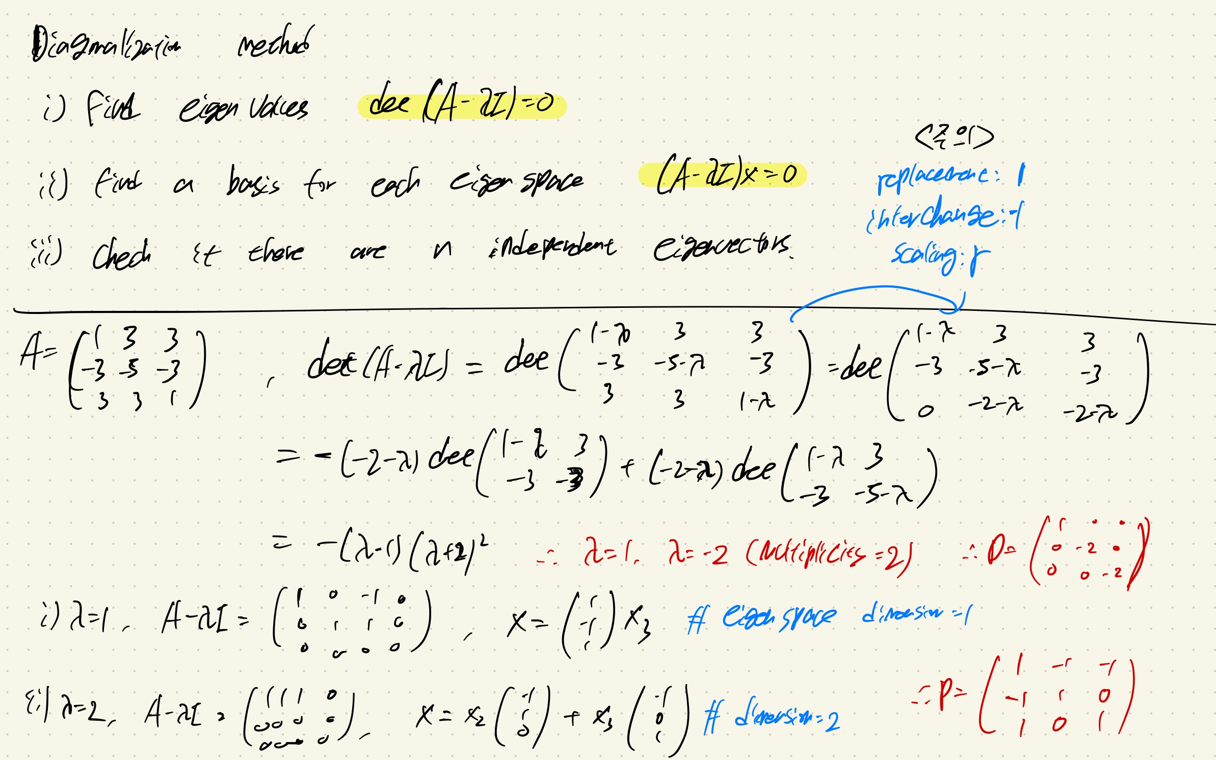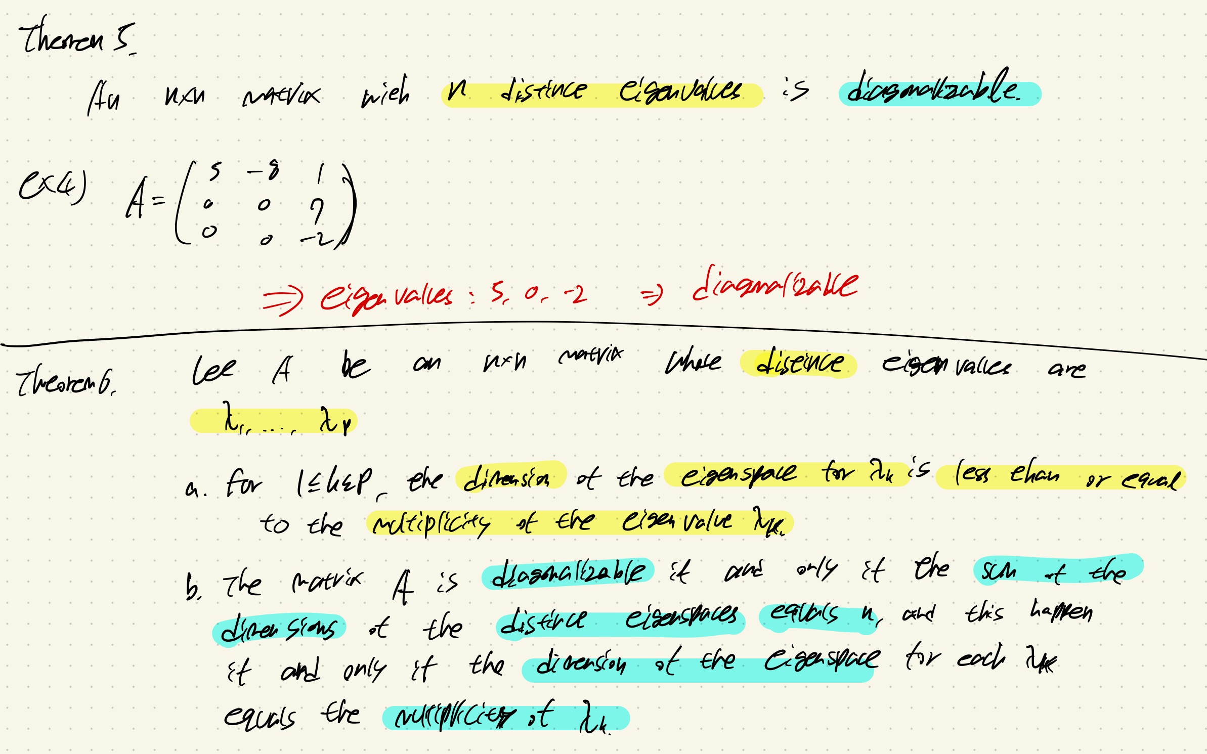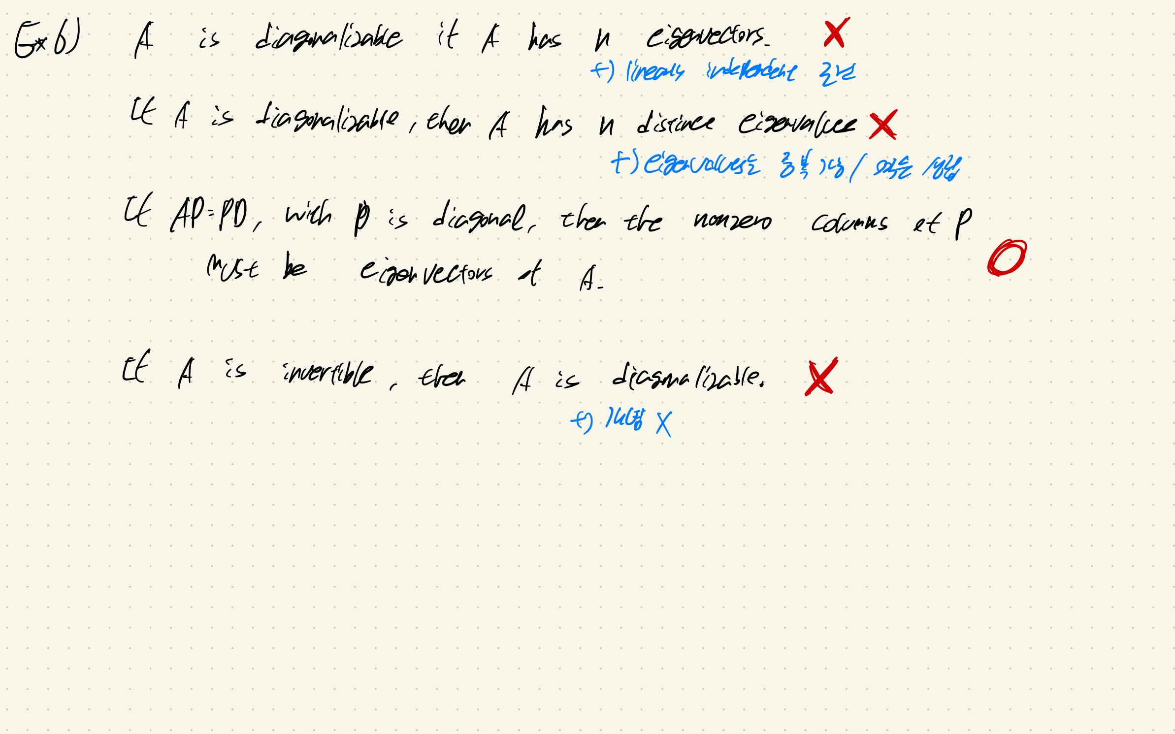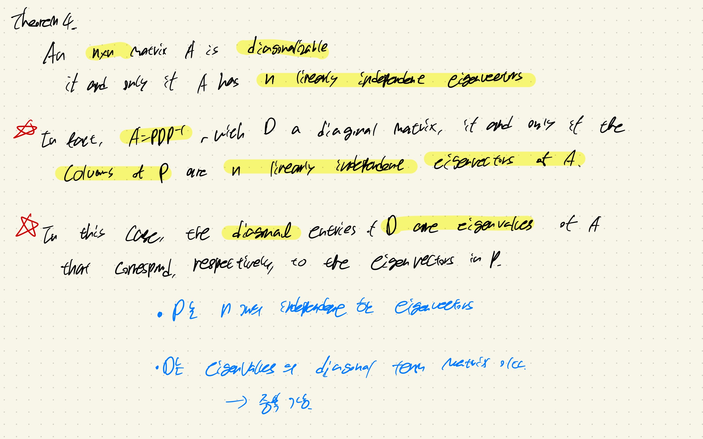 2. P는 invertible하고 linearly independent한 n개의 eigenvectors들이 columns에 위치한다.