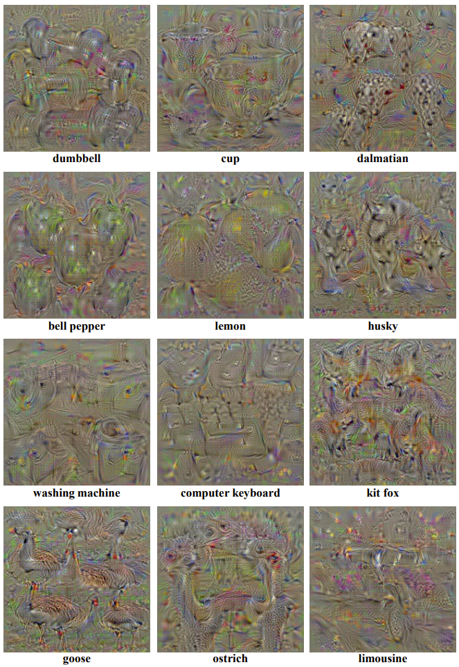 Noise image를 backpropagation algorithm으로 학습함에 따라, 어떻게 image가 변화하는지 표현한 것인데,