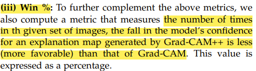 - 3가지 metrics에 대해서 Grad-CAM의 성능이 전반적으로 좋은 것을 확인할 수 있다.