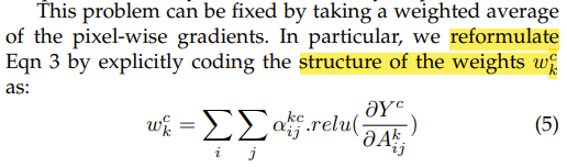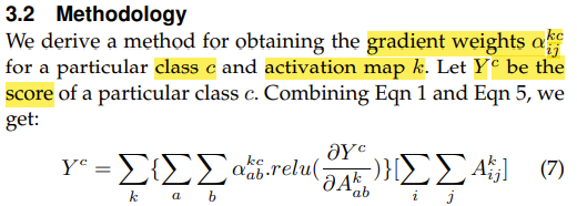1. Grad-CAM은 CAM의 일반화된 모형으로 wkc를 (3) equation으로 대체하여 사용할 수 있다. (자세한건 논문 리뷰 글 참고.)