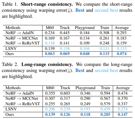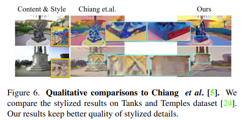 - 기존의 SOTA라고 생각되는 Chiang et al. 논문과 비교했을 때, 확실히 style에 대한 RGB의 consistent가 잘 유지되는 듯하게 보인다.