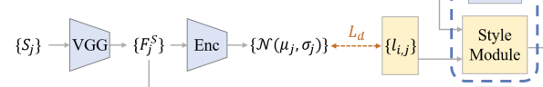 이것은 VGG-19에서 나온 style embedding을 VAE-Encoder에 넣어서 나오는 feature와 N(µ , σ) 분포에서 sampling해서 나오는 latent code간의 loss function을 계산한 식이다.