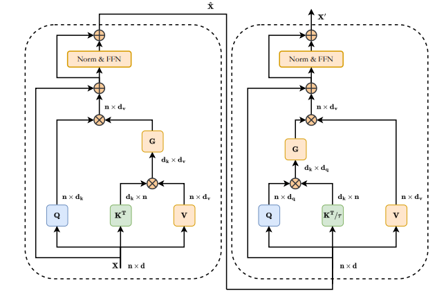 4. pv, pk(normalization function)을 이용하여 efficient function와 동일한 mechanism으로 pv(V)pk(KT)Q를 계산하여 값을 얻는다.