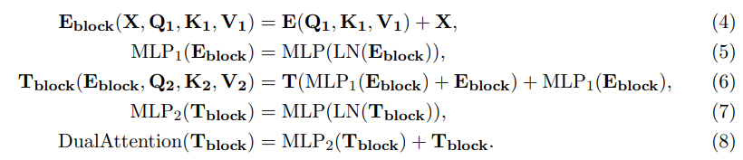 8. 마지막으로 MLPblock2 + Tblock을 수행하여 DualAttention vector를 계산한다.