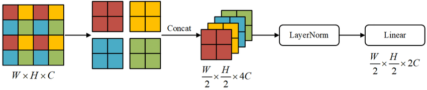+) Patch Merging: Patch를 합치는 과정으로, 2x2 patch로 merge를 하기 때문에, channel이 doubling되는 것이다! (아래의 그림을 보면 확실히 이해가 될 것이다.
