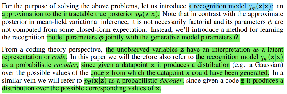 여기서는 recognition model q_φ(z|x)와 다루기 힘든 true posterior p_θ(z|x)로 구분한다.