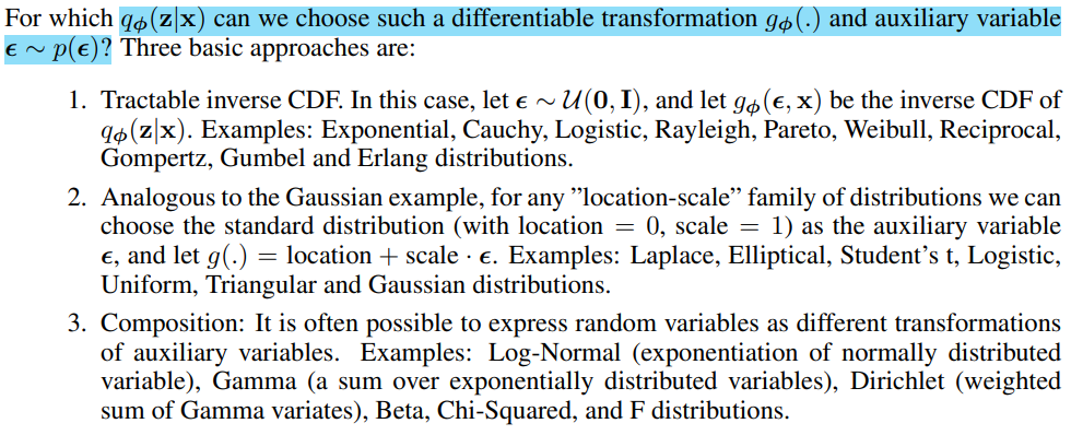 +) 논문의 저자들이 어떤 differentiable transformation function과 noise variable을 골라야 하는지에 대한 가이드라인(?)을 적어두었다.