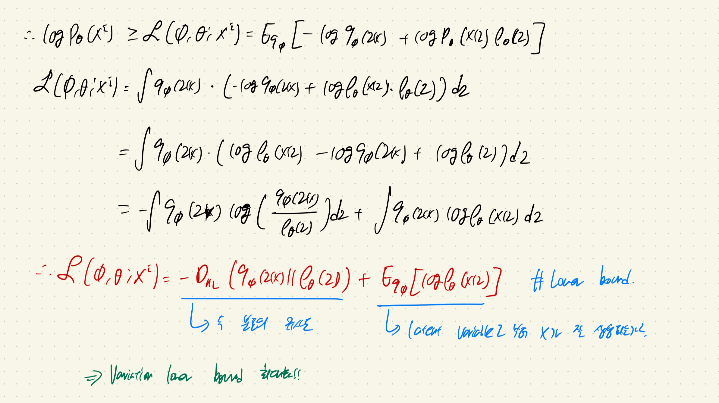 즉, variation lower bound를 최대화하는 방향으로 optimization을 수행한다.