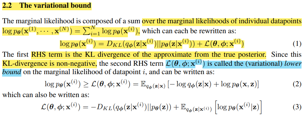 여기서 KL-Divergence를 직접 구하는 것은 힘들기 때문에 사후분포에 대한 값을 maximize해서 latent variable z로 부터 x가 나올 기댓값을 크게 만든다.