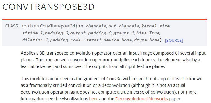 +) ConvTranspose연산이다. Pytorch 자료를 가져왔으며, 3D, 2D, 1D 전부 있다.
