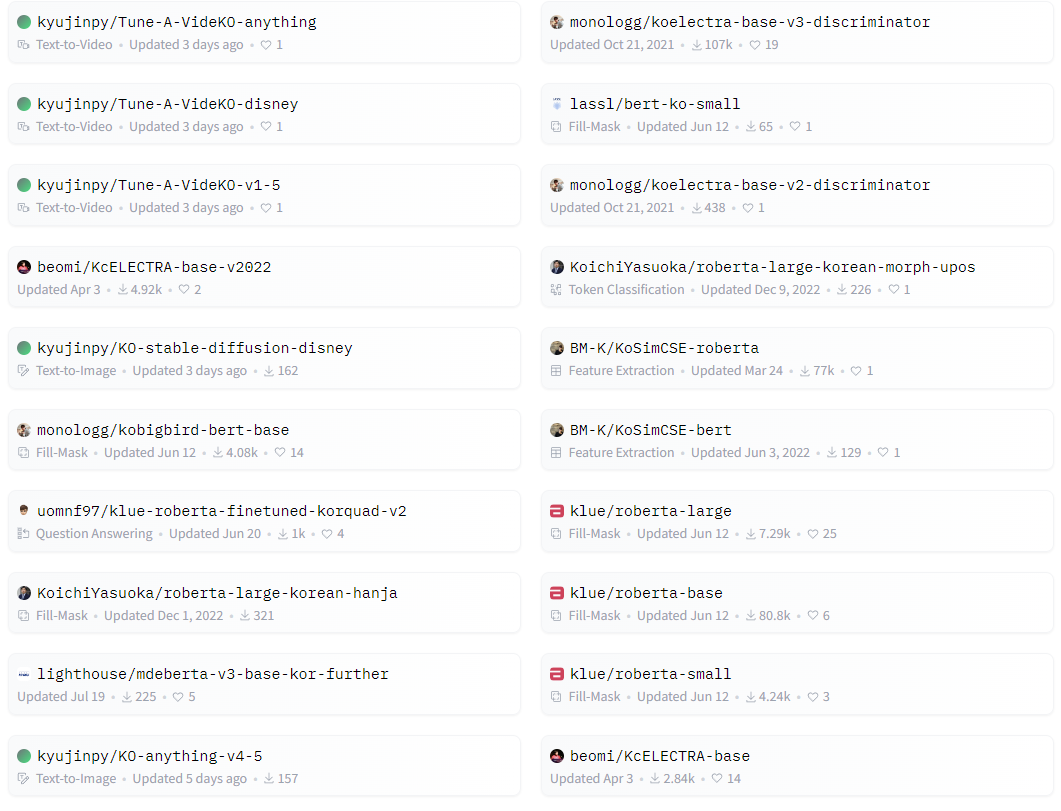 +) 8/20 huggingface models trend 1 페이지에 kyujinpy가 5개나!!