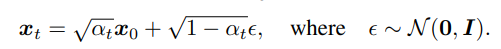 2. Ⲉ()은 xt로 부터 noise 값인 Ⲉt를 예측하는 것이다. (DDPM에서 사용했던 reparameterization 방법과 유사한 듯)