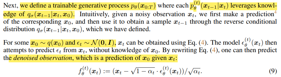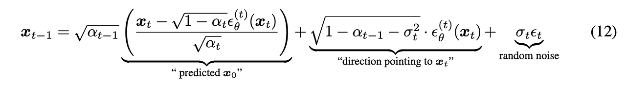 DDIM의 설명은 다음과 같다. (Equation 12)