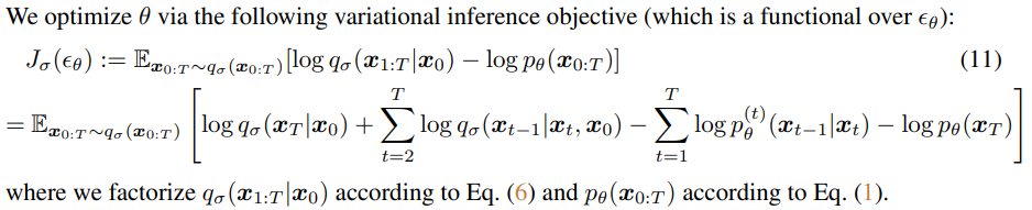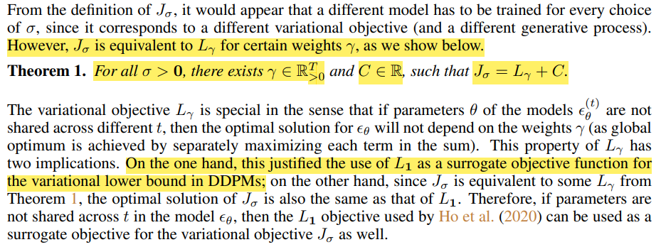 만약, sigma가 0보다 크다면 DDPM의 ELBO와 같은 형태가 되고, 0이면 DDIM의 objective이다.
