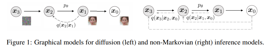 기존의 Diffusion-Denoising process는 markovian을 기반으로 작동되는 메커니즘이었지만, DDIM은 non-markovian으로 움직인다.