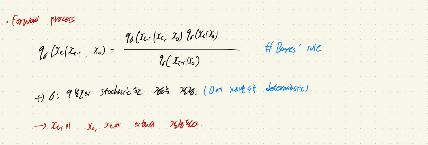 Forward process는 베이지안에 따라서 위와 같이 표현될 수 있다.