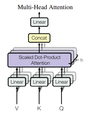 위의 사진을 보면, V, K, Q가 Attention에 총 h번 들어가고